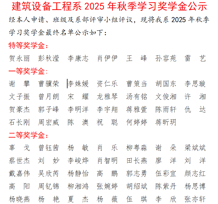 建筑设备工程系2024-2025学年国家奖学金获得者公示