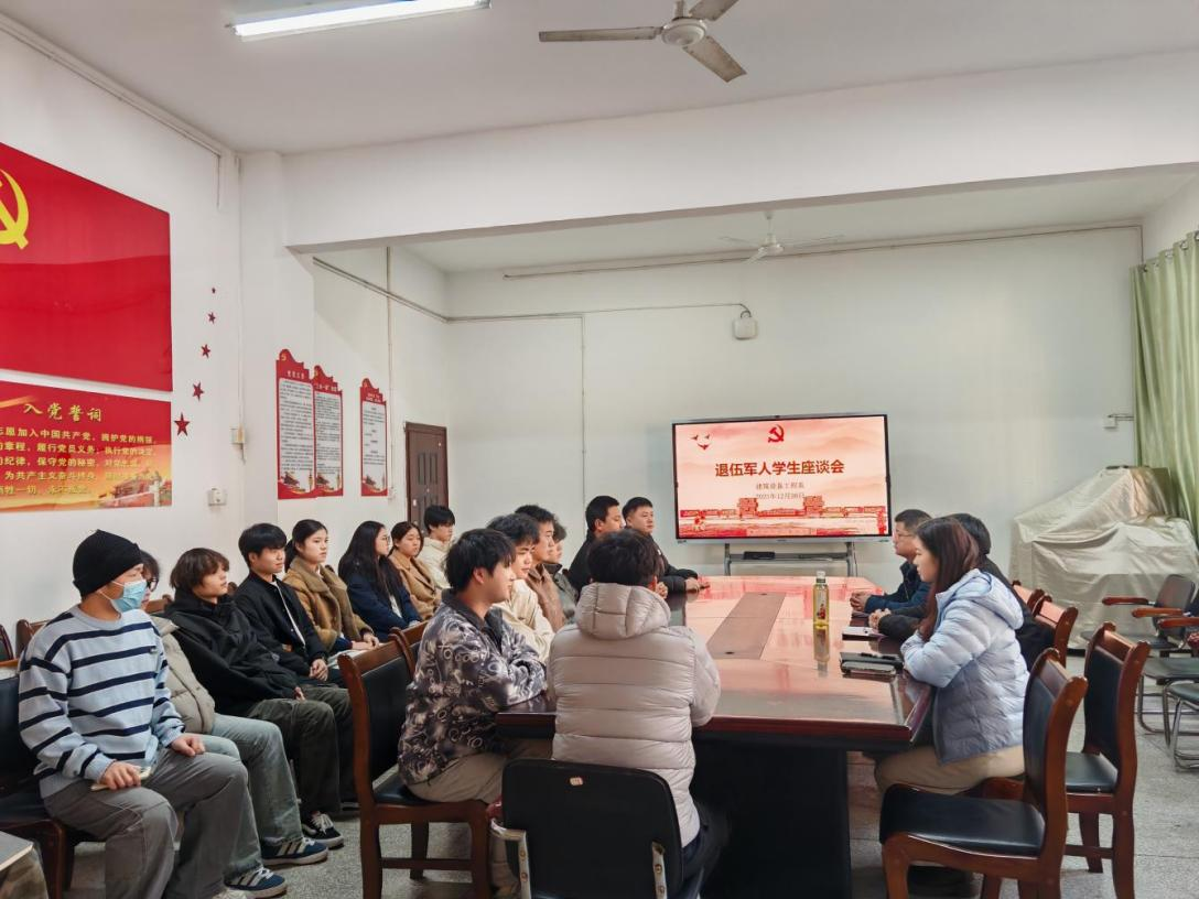 2025年12月26日,建筑设备工程系召开退伍军人座谈会,系党总支副书记邬文武、学工办主任李石佳、辅导员曹依婷以及退伍军人学生代表参加。