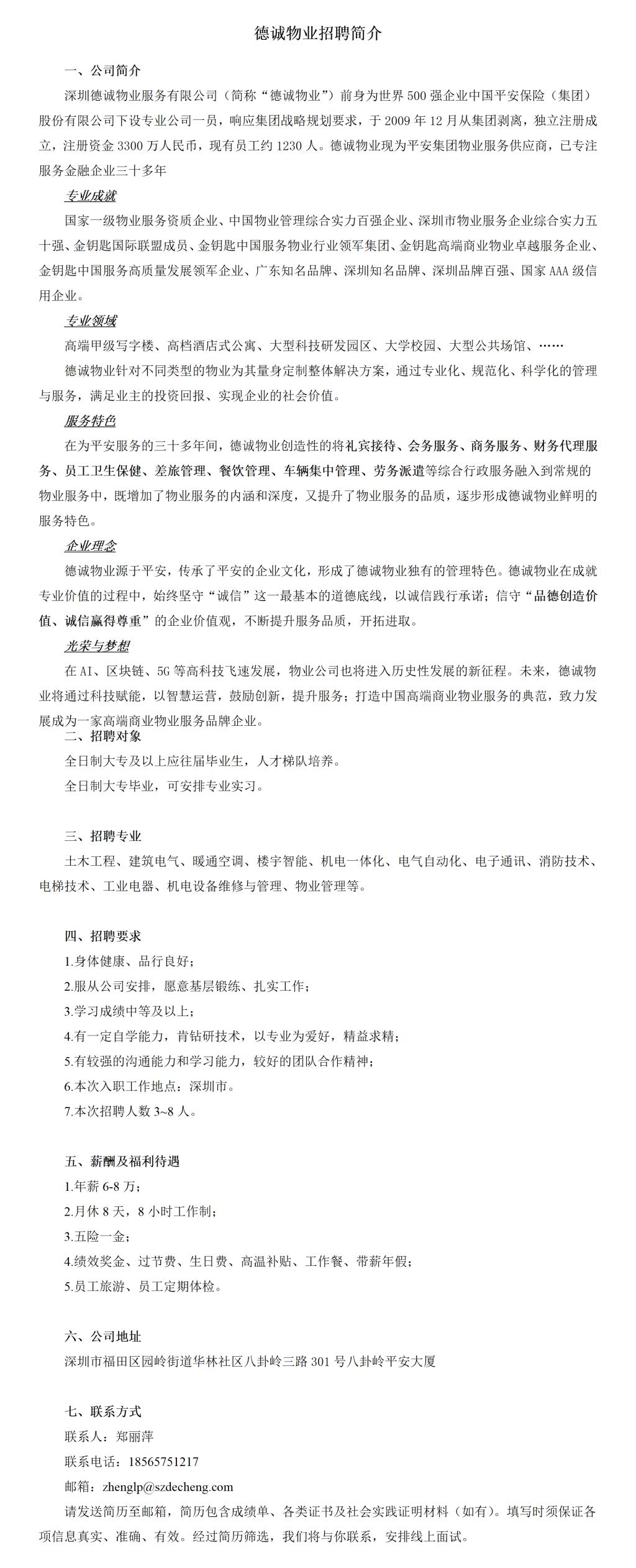 德诚物业招聘简介