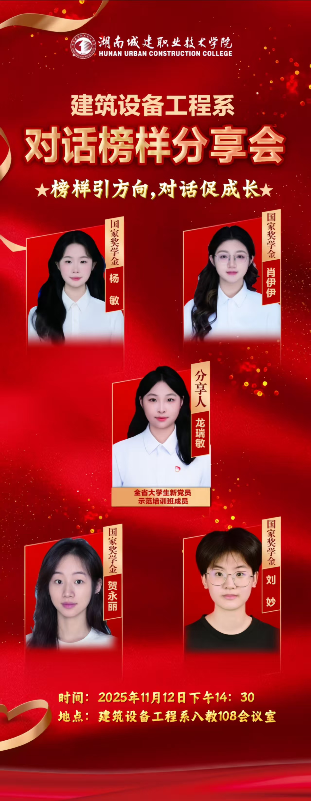 贺永丽,湖南湘潭人,共青团员,湖南城建职业技术学院建筑设备工程系2023级学生。在校期间荣获2023-2024年度国家励志奖学金,鲁班优秀学生干部,第二期青禾班“优秀学员”,第二十四期青马班“优秀学员”,优秀课堂笔记“优秀奖”,聚力创新,策动未来”一等奖,2023年秋季三等奖学金,2024年秋季二等奖学金,2025年秋季一等奖学金,文明寝室4次。